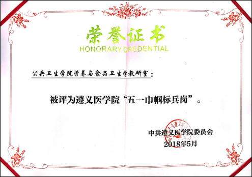 2018年教研室团队获遵义医公司“五一巾帼标兵岗”,连续6次获williamhill英国官网科室评比第一名。