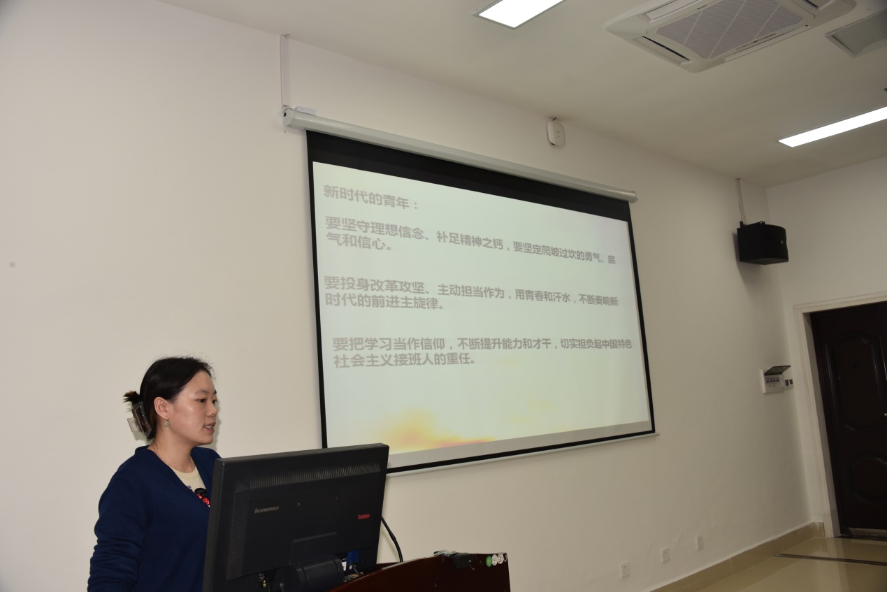 在为5月份入党的同志过“政治生日”阶段,支部书记刘俊为李岩、张在金、胡斌丽、张建玲四位同志赠送“政治生日贺卡”和纪念品;党员代表胡斌丽作“政治生日”交流发言。