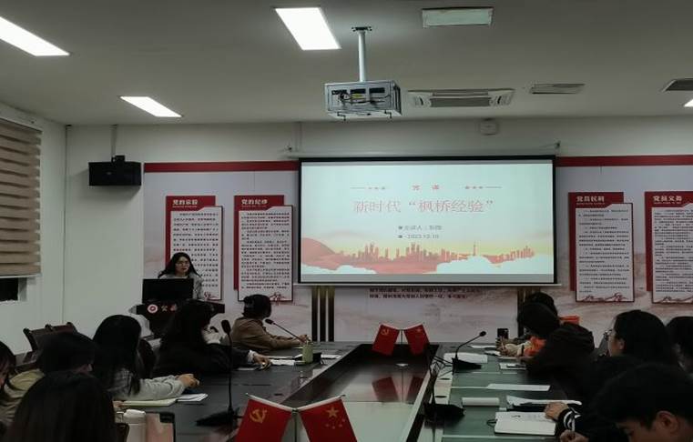 会上,张微同志以习近平总书记在党的二十大报告中的讲话为切入点,指出“枫桥经验”的重要性,并进一步从“枫桥经验”的产生、发展和创新三个阶段进行讲解,使各位同志深刻体会到“枫桥经验”是人民的创造、历史的选择、时代的需要。最后,所有党员一同观看了《新时代“枫桥经验”》视频,切身感受到了什么叫做“从‘发动和依靠群众,坚持矛盾不上交,就地解决’到‘小事不出村、大事不出镇、矛盾不上交’”的典范。