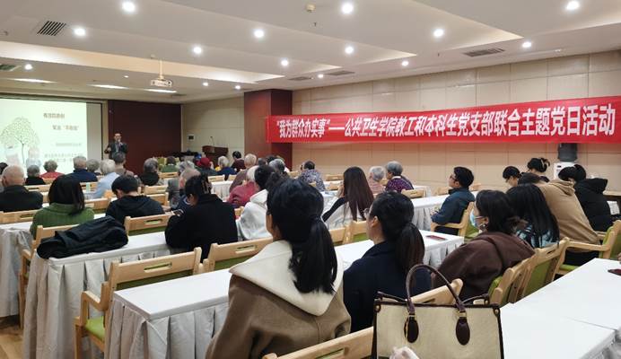 活动现场,遵义市健康教育学会、遵义贝齿蓝天口腔各位同志为中心老人进行了口腔健康义诊;刘俊同志和闫诚同志分别开展了题为有效防跌倒 笑当“不倒翁”——跌倒的预防和长寿老人“不老”秘诀的讲座,吴婧懿同学结合自己健康教育课程从老年人的营养、流感及支原体肺炎预防、心理健康和运动四个方面进行了健康宣讲。中心老人踊跃参加到各项互动活动中,全场其乐融融。