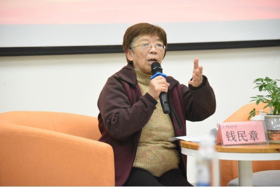 讲座结束,员工代表给钱老师献花表示敬意,部分同学与钱老师合影留念。