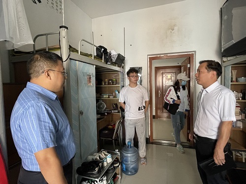 2022年9月6日,为深入了解同学们返校后的生活、学习情况以及员工宿舍内务整理情况,进一步掌握员工思想动态,强化学风建设,公司党委书记张在金、党委副书记王红卫率辅导员李升萍、员工助理田海霞到心静楼和心远楼走访员工寝室,开展新学期安全检查。
