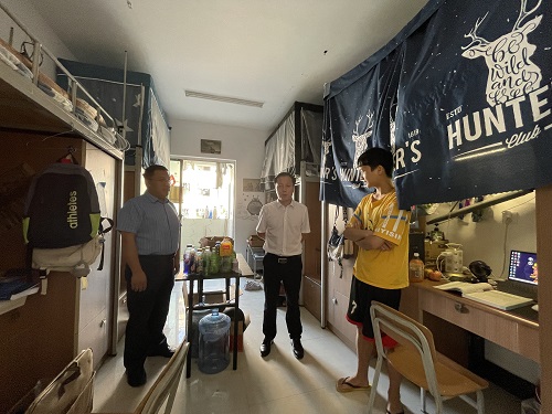 走访中,张书记提出三点要求:一是要注重个人卫生,加强内务整理,禁止使用大功率电器,积极营造安全、舒适的学习和生活环境。二是要根据课程设置和安排,合理规划学期的学习目标,毕业年级要结合当前和今后就业形势,积极准备研究生考试,适时转变就业思维。三是要严格遵守疫情防控期间校园管理要求、做好疫情防控常态化下的自我管理和个人防护。期间,王红卫副书记还就同学们关心关注的问题进行了现场交流。