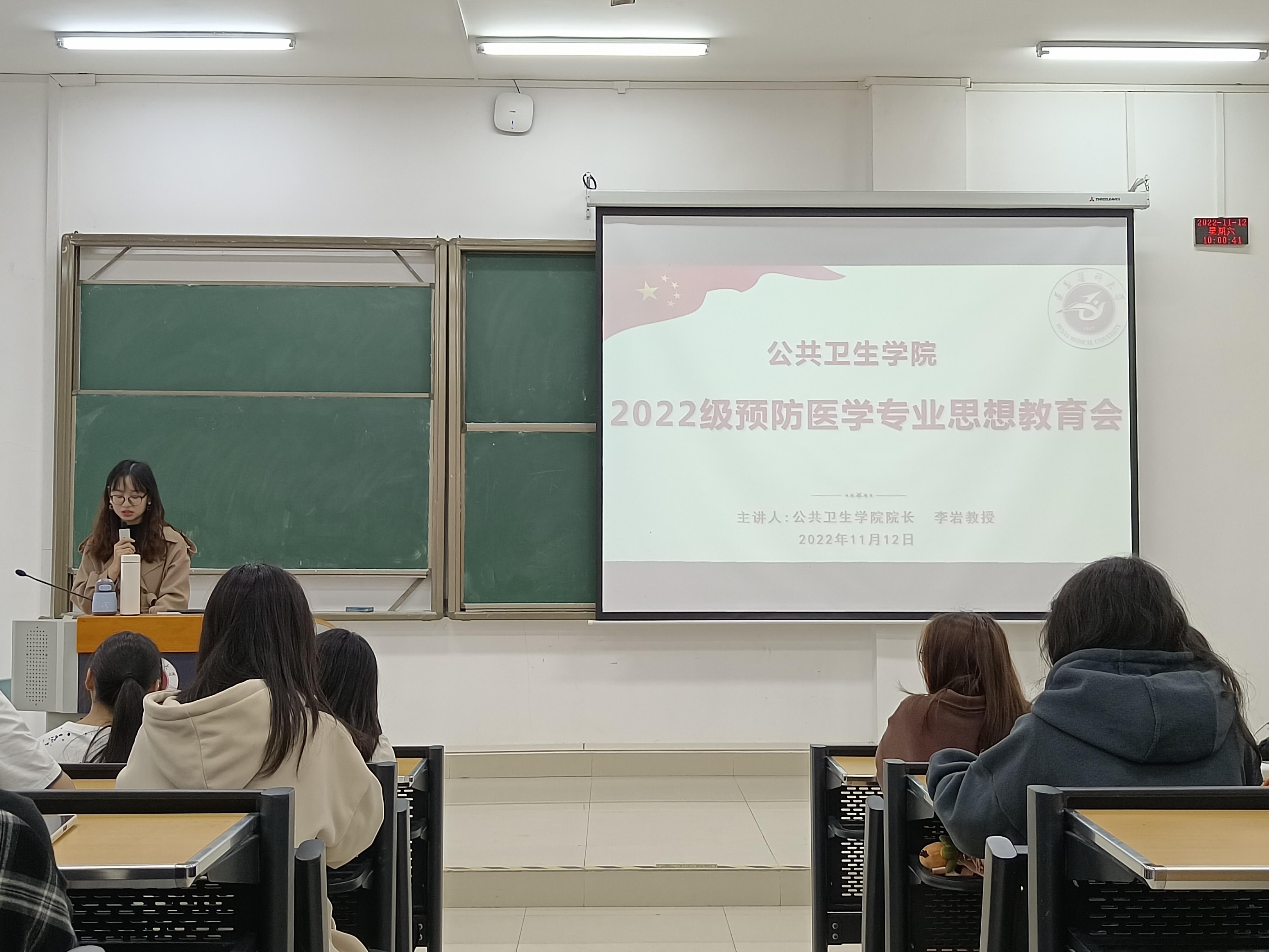 为加强2022级新生对预防医学专业的了解,督促大家的专业学习,williamhill英国官网于2022年11月12日在第四教学楼35阶梯教室举行了预防医学专业新生思想教育会。此次会议由williamhill英国官网经理李岩教授主讲,教师代表刘俊、曾嵘,各兼职班主任及全体2022级预防专业新生共同参与,本次会议由兼职班主任陈青主持。