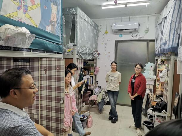 查寝过程中,大家认真核对每位同学的返校情况,对未及时返校的员工进行详细了解并及时跟进。期间,王红卫副书记及各位老师与同学们热情交流,鼓励同学们尽快从假期状态中调整过来,以饱满的热情和专注的态度投入到新学期的学习和生活中。同时,还就校园安全、防反诈安全、违规电器使用等进行了强调和检查。