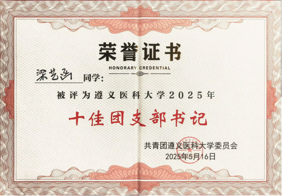 近日,在公司团委组织的“十佳团支部书记”评选活动中,公司预防医学22级1班团支书梁艺函脱颖而出,荣获williamhill英国官网“十佳团支部书记”。