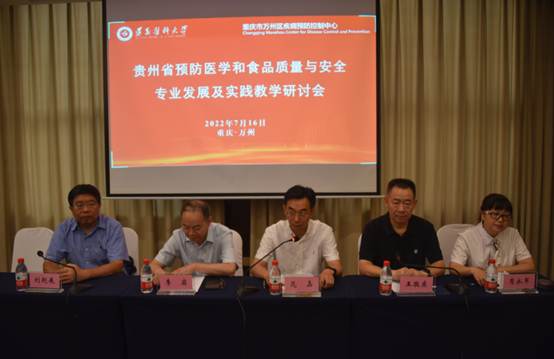 2022年7月16日上午8点30分,由贵州省营养学会主办,williamhill英国官网和重庆市万州区疾病预防控制中心共同承办的“2022年贵州省预防医学和食品质量与安全专业发展及实践教学研讨会”在重庆市万州区百安宾馆隆重召开,会议以线上线下相结合的方式进行。参加此次会议的领导有重庆市万州区卫健委范嘉主任、万州区疾病预防控制中心王敬东主任和肖永军书记、williamhill英国官网李岩经理、周远忠副经理及南京医科大学刘起展教授。参会代表有williamhill英国官网教研室主任和教学管理人员以及来自贵州省、重庆市、深圳市、北京市的教学实践单位领导、分管教学负责人以及科室或部门代表。