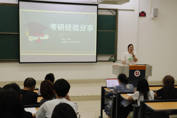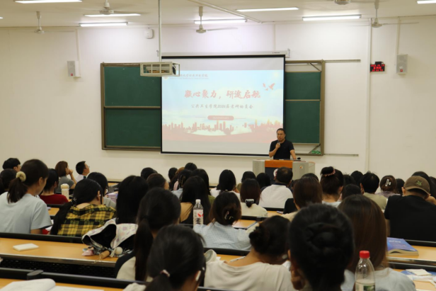 会议伊始,预防医学教研室主任刘怡君为同学们讲解考研的意义,结合专业及院校选择、备考策略等方面给大家提出建议,并分享个人经历激励大家积极准备。食品质量与安全专业负责人张孝刚鼓励同学们明确人生方向,无论是选择就业还是考研,都应早做规划;他建议同学们扎实学习、主动参与导师课题实验,不断提升专业素养和综合能力。随后,2025级流行病与卫生统计学专业研究生路敏结合自身在校本科学习经历,从考研或保研的决策、院校选择、复习方法到面试准备,全过程分享了备考经验与心得。师生代表的发言从不同角度全面而细致地为同学们解析了考研过程中可能遇到的各类问题,并提供了实用建议。