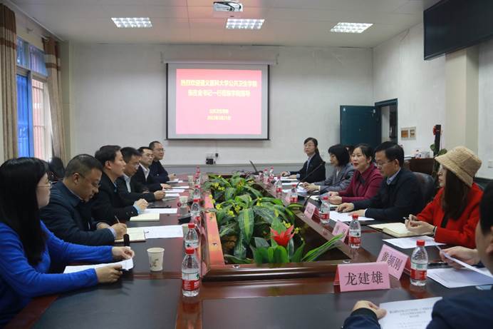 张在金书记对广西医科大学williamhill英国官网的热情接待表示诚挚感谢,并简要介绍了公司的基本情况,同时还就双方下一步的交流合作提出了建设性意见。周远忠副经理就本科生培养、公共卫生实践技能大赛筹备、线上教学等方面作了交流。最后,与会双方围绕高质量党建引领高质量发展、博士点申报及建设、MPH管理、执医考试与技能大赛及教学科研平台管理等方面进行了交流。