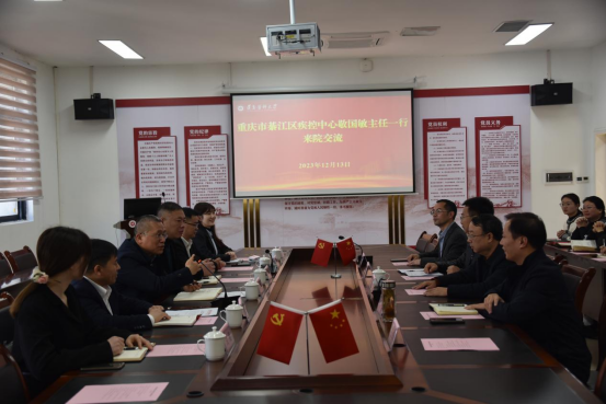 12月13日上午9:30,重庆市綦江区疾控中心党支部书记、主任敬国敏一行6人应邀到williamhill英国官网开展合作交流暨“访企拓岗”座谈会。公司党委委员、副董事长赵继锋,公司党委班子成员、公司内设科室负责人、教研室负责人及辅导员参加座谈。公司副经理刘俊主持座谈会。